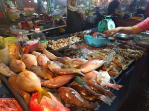 コタキナバルはシーフードが有名みたいで、ナイトマーケットではこんな感じで魚が並べてある屋台がいっぱい並んでいます。自分で魚と調理方法を選びオーダーします。